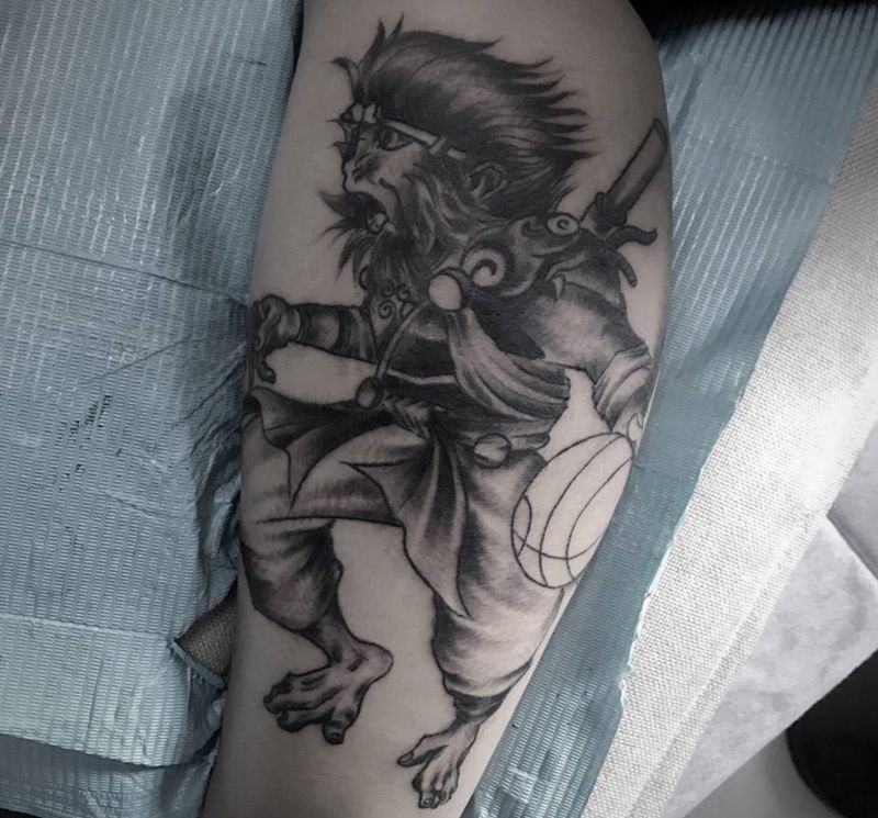当前位置: 首页 >河北省沧州市纹身店-京南刺青纹身图案>篮球猴纹身图片