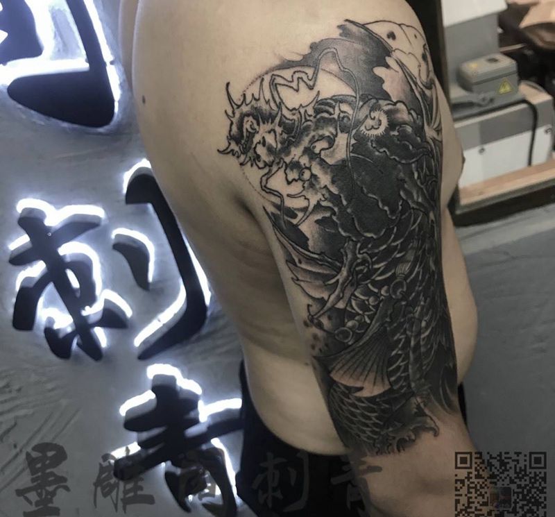 当前位置: 首页 >河北省沧州市纹身店-京南刺青纹身图案>鳌鱼遮盖作品纹身图片