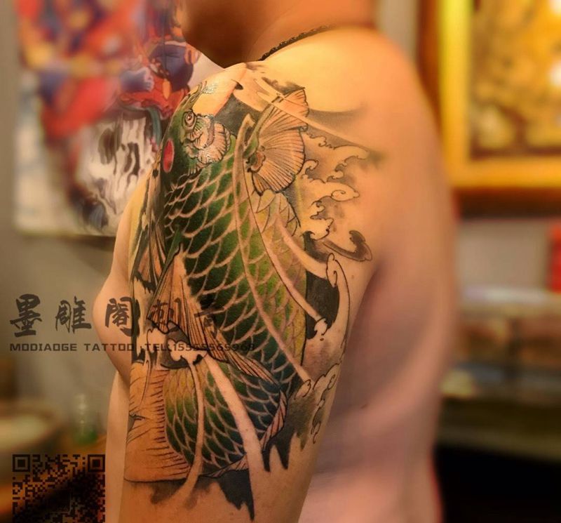 当前位置: 首页 >河北省沧州市纹身店-京南刺青纹身图案>绿鲤鱼纹身图片