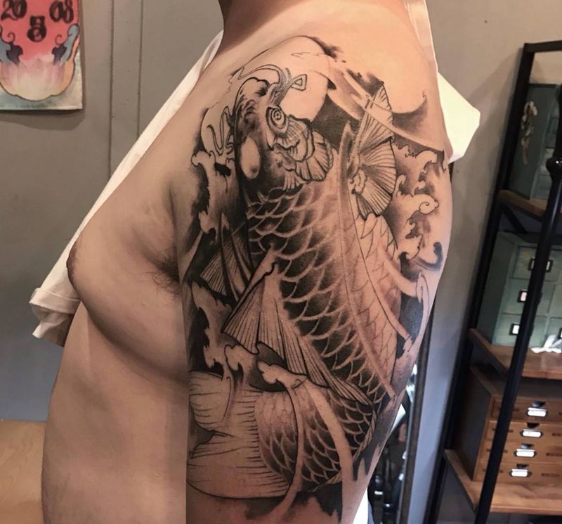 • 纹身吧推荐的披肩图腾半胛纹身图案作品展示