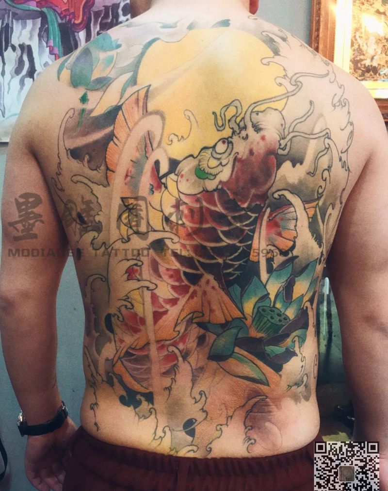 当前位置: 首页 >河北省沧州市纹身店-京南刺青纹身图案>满背鲤鱼纹身图片