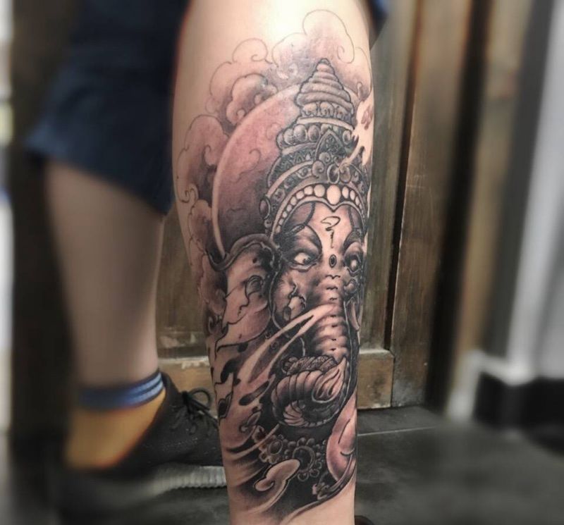 当前位置: 首页 >河北省沧州市纹身店-京南刺青纹身图案>小腿象神纹身图片