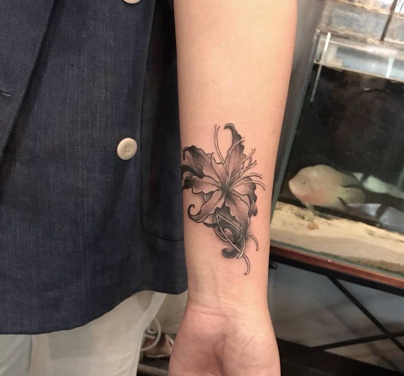 当前位置: 首页 >河北省沧州市纹身店-京南刺青纹身图案>彼岸花遮盖伤疤纹身图片
