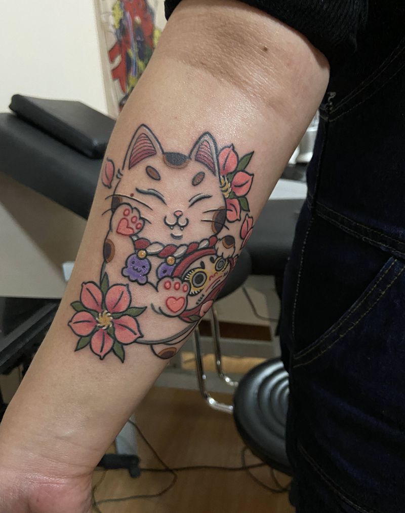 当前位置: 首页 >河北省廊坊市纹身店-天工刺青纹身图案>招财猫纹身图片_手臂纹身图案