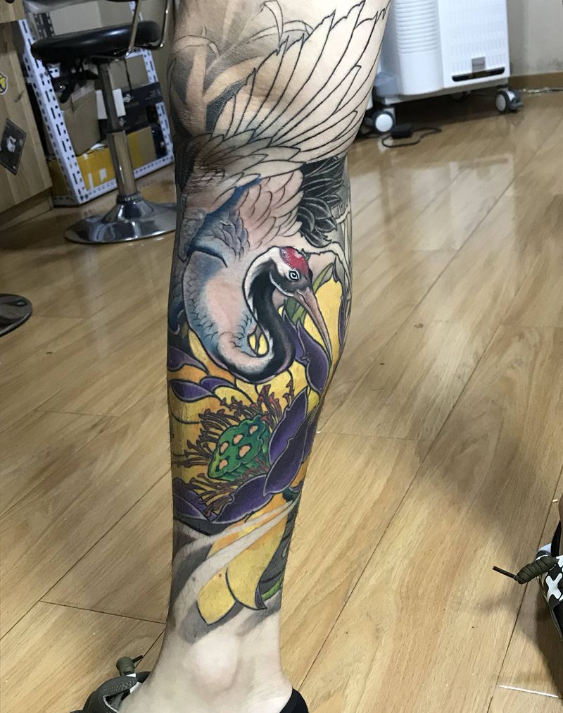 当前位置: 首页 >河北省廊坊市纹身店-天工刺青纹身图案>仙鹤纹身图片_腿部新传统纹身图案