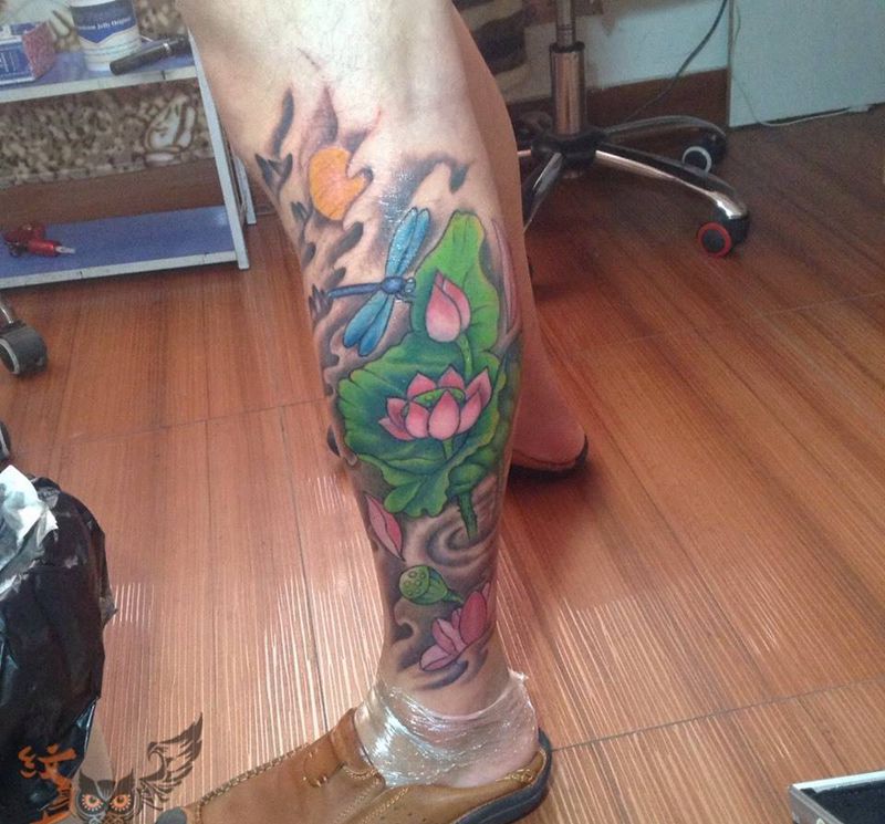 • T网红王老大花腿龙纹身图片_腿部新传统纹身图案