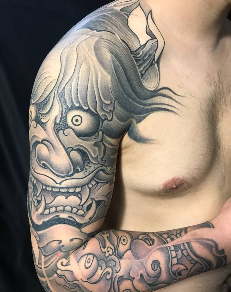 当前位置: 首页 >河北省沧州市纹身店-王刺青纹身图案>花臂(传统黑灰)纹身图片