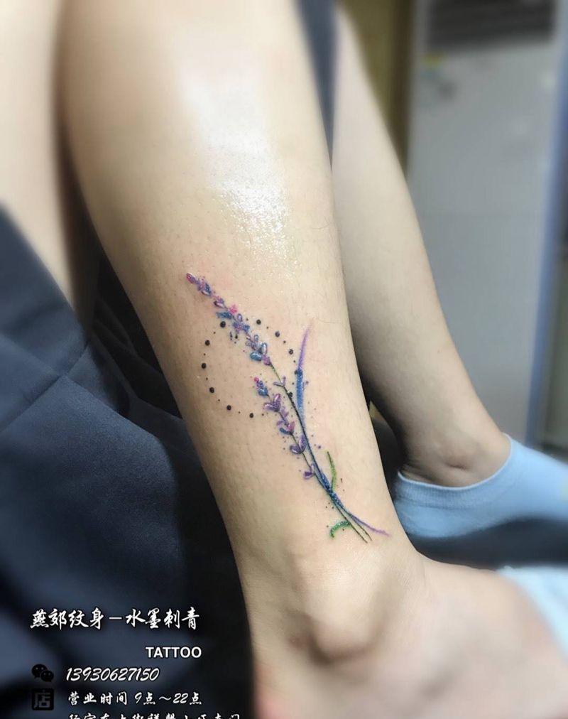当前位置: 首页 >河北省廊坊市纹身店-祥Tattoo燕郊店纹身图案>薰衣草纹身图片_清新水墨成品脚部腿部纹身图案