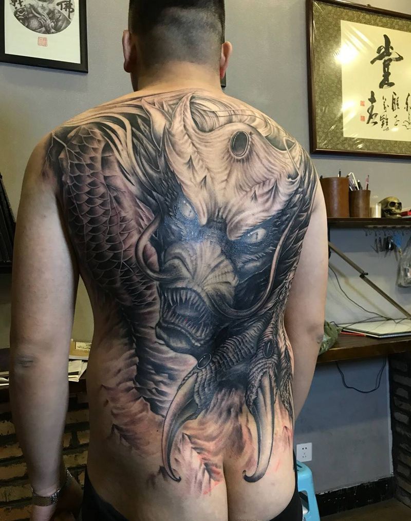 • T云龙九郎纹身图片_背部老传统云龙九郎纹身图案
