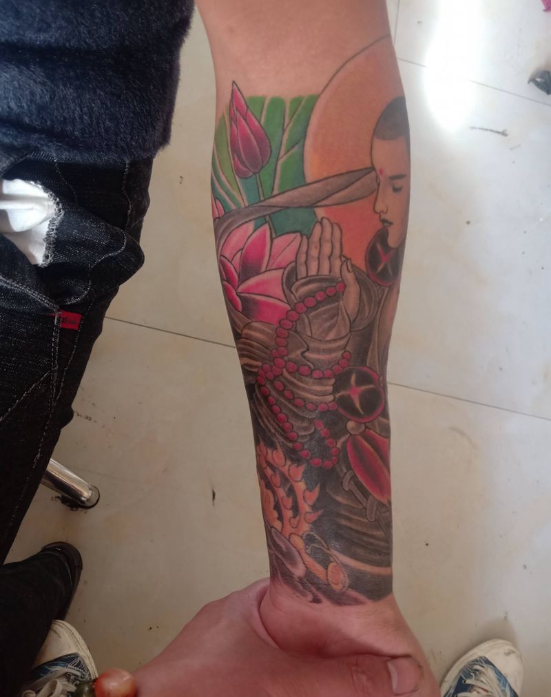 当前位置: 首页 >河北省沧州市纹身店-福帅刺青纹身图案>和尚纹身图片_手臂新传统纹身图案