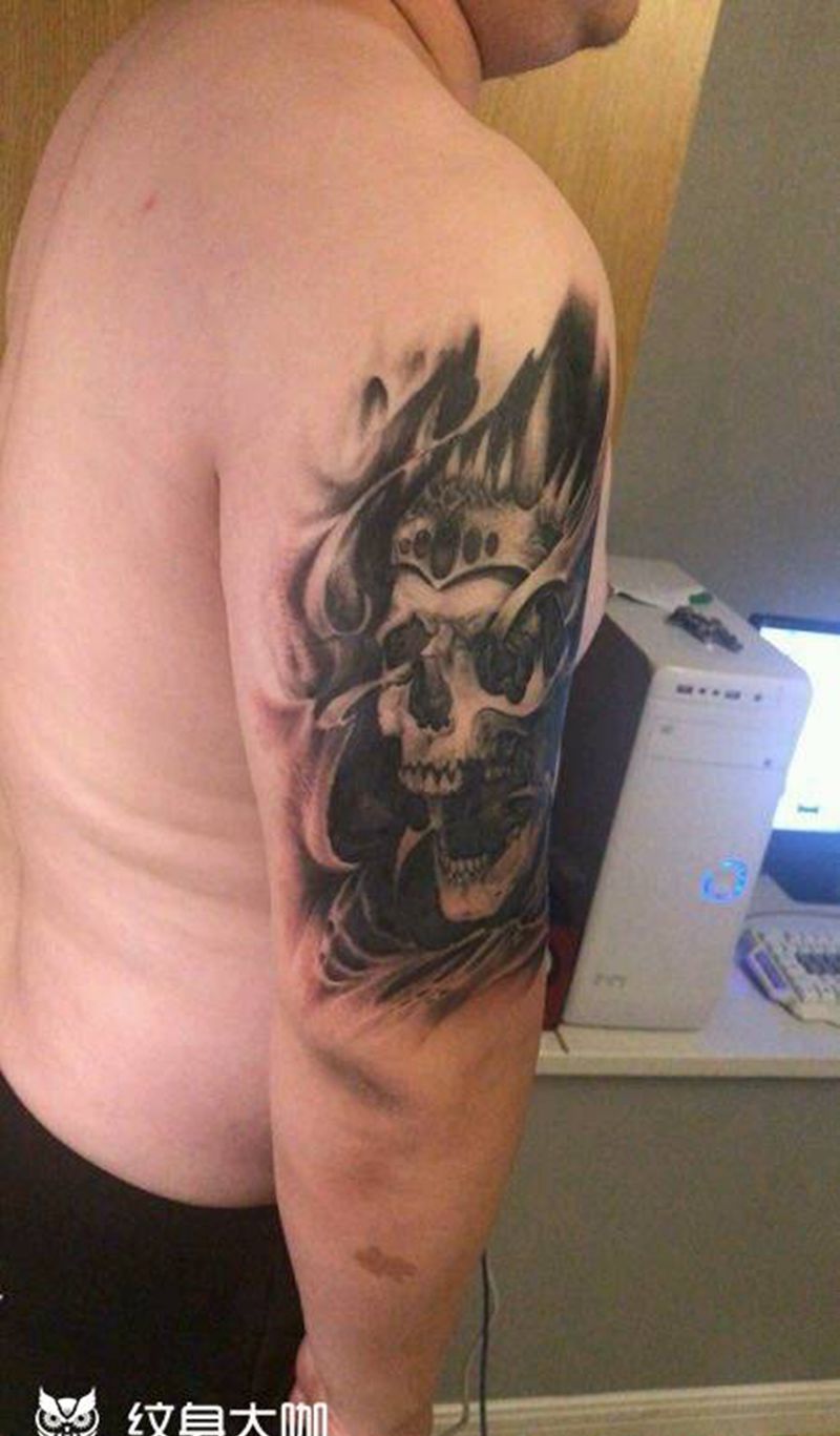当前位置: 首页 >河北省廊坊市纹身店-妖舞刺青纹身图案>骷髅纹身图片_肩部欧美肖像写实人物鬼神骷髅成品纹身图案