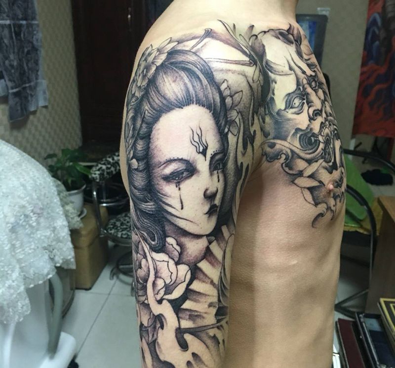 当前位置: 首页 >山西省太原市纹身店-太原御墨刺青纹身图案>半甲纹身图片