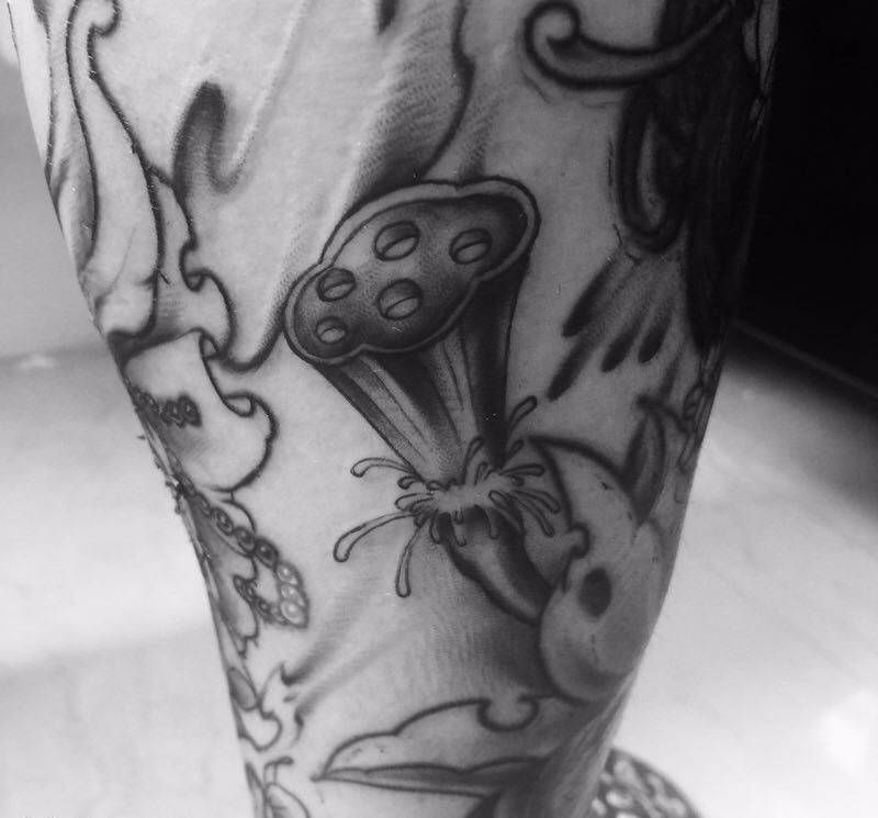 当前位置: 首页 >山西省太原市纹身店-玄铭堂纹身纹身图案>莲蓬纹身图片_成品手臂传统植物纹身图案