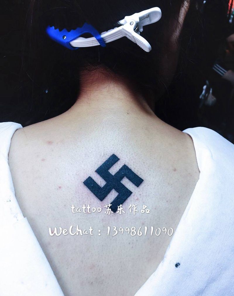 昨日作品纹身图片_成品背部传统习俗几何字符宗教纹身图案