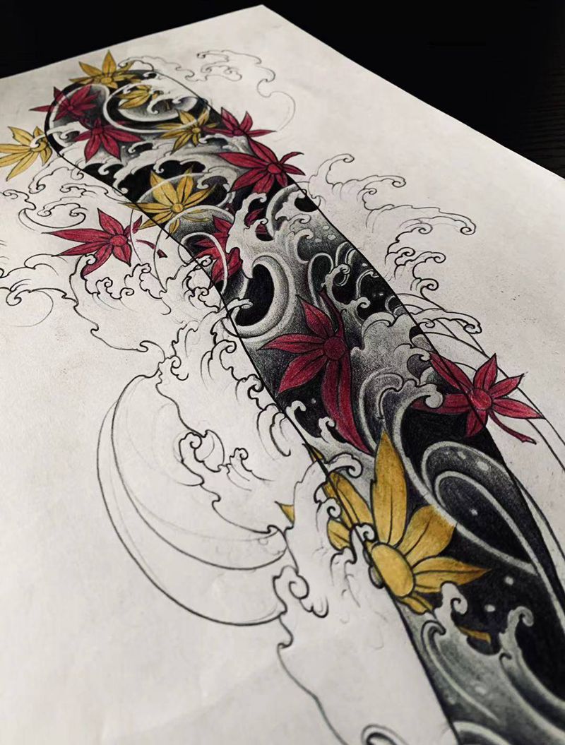 当前位置: 首页 >山西省太原市纹身店-太原翰墨刺青纹身图案>水浪枫叶纹身图片_手臂纹身图案