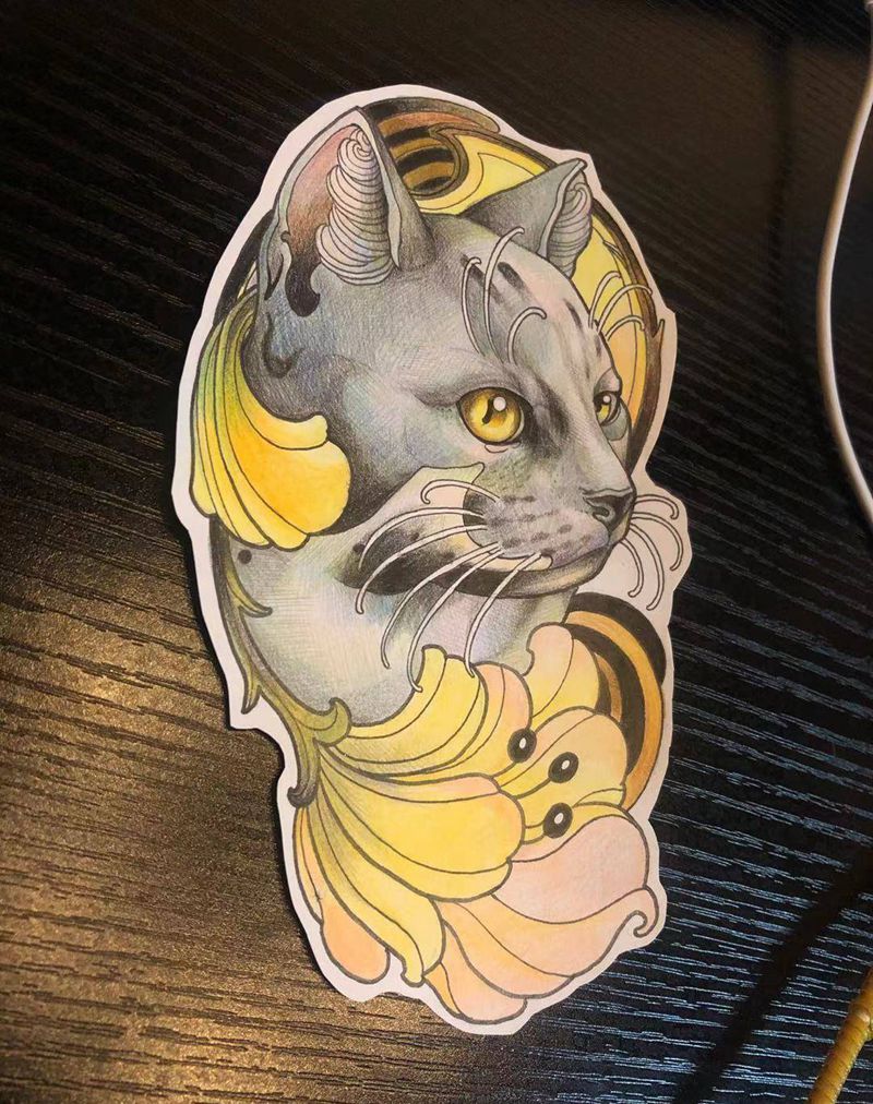 当前位置: 首页 >山西省太原市纹身店-太原翰墨刺青纹身图案>猫咪纹身图片_腿部手臂New School纹身图案