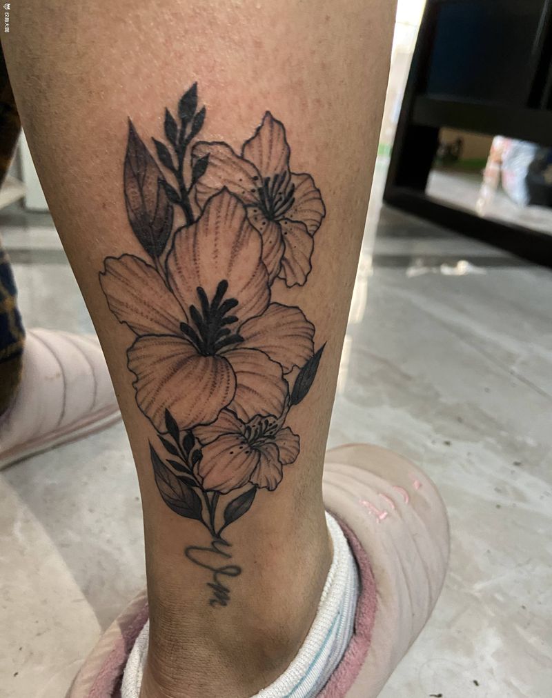 当前位置: 首页 >山西省太原市纹身店-太原翰墨刺青纹身图案>素花~扶桑花纹身图片_腿部小清新纹身图案
