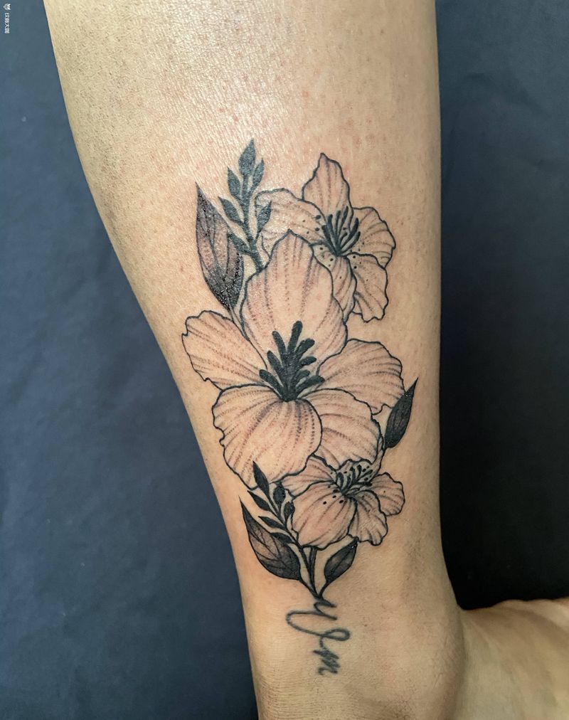 当前位置: 首页 >山西省太原市纹身店-太原翰墨刺青纹身图案>素花~扶桑花纹身图片_腿部小清新纹身图案