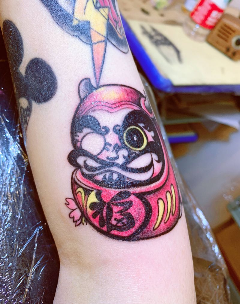 当前位置: 首页 >山西省太原市纹身店-古龍刺青纹身图案>小达摩旦纹身图片_手臂Old School纹身图案