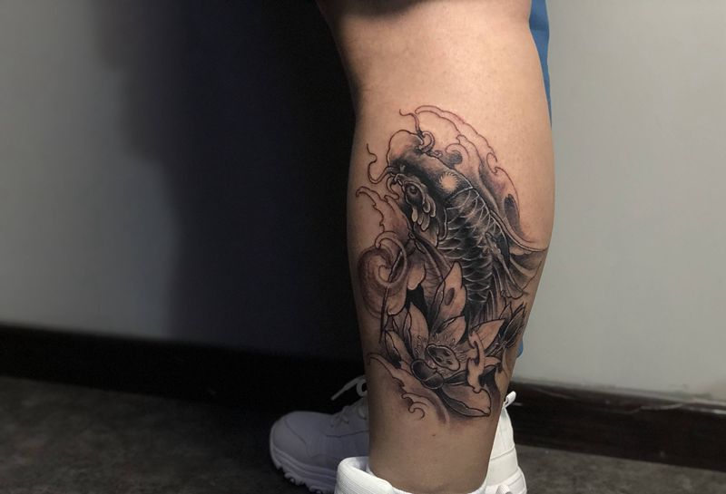 • T网红王老大花腿龙纹身图片_腿部新传统纹身图案