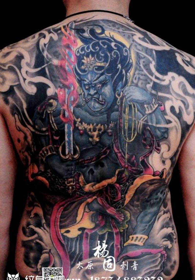 不动纹身图片_背部传统国画人物鬼神宗教原创成品手稿纹身图案
