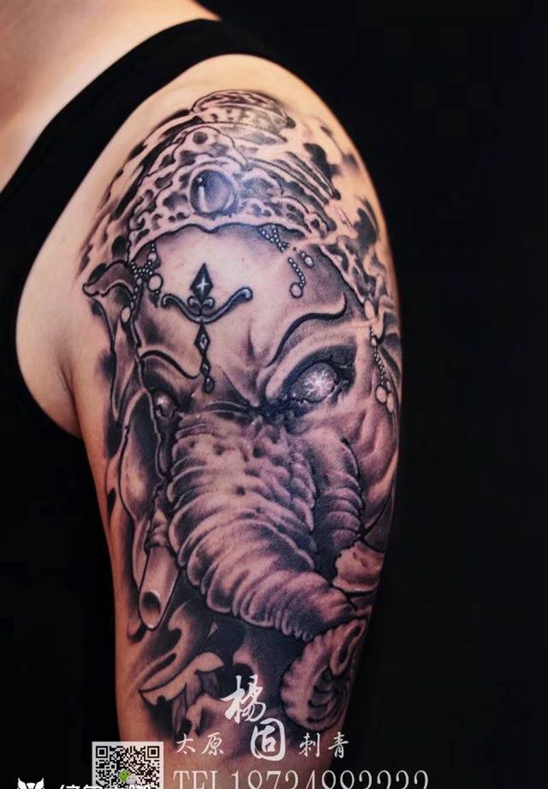 象神纹身图片_成品手臂传统宗教鬼神动物纹身图案