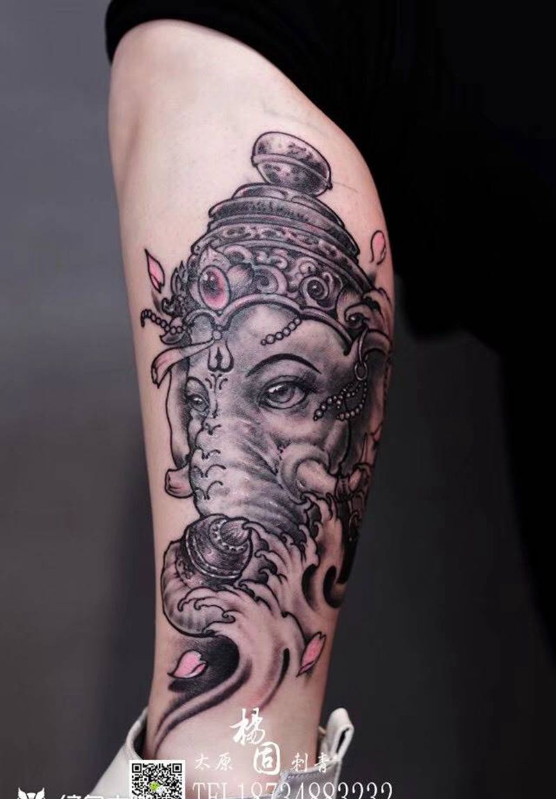 象神纹身图片_成品传统腿部宗教鬼神纹身图案