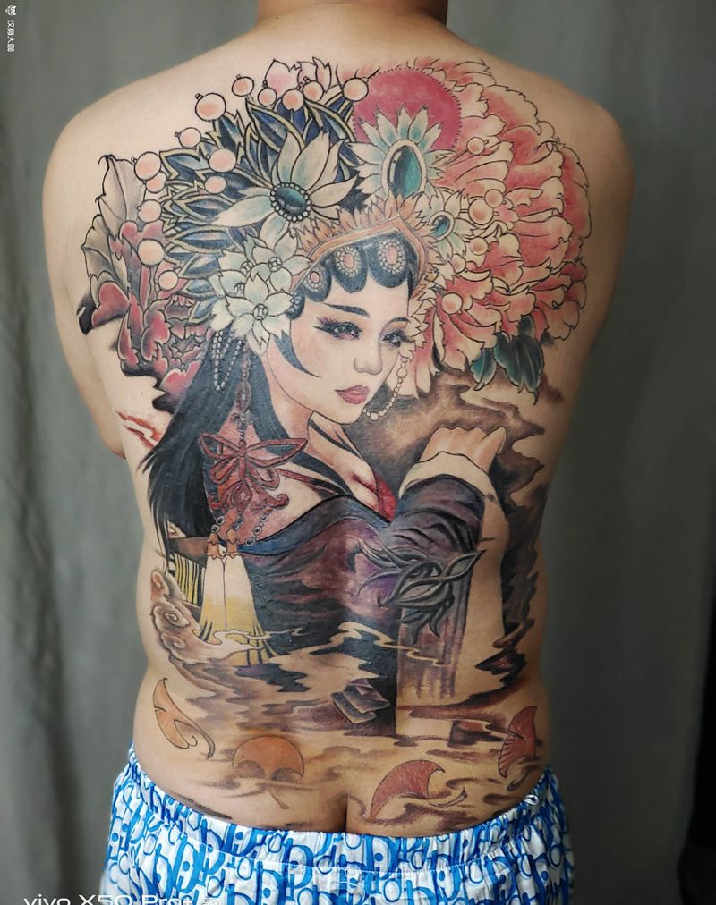 当前位置: 首页 >山西省太原市纹身店-太原翼龙刺青工作室纹身图案>牡丹亭纹身图片_背部新传统纹身图案