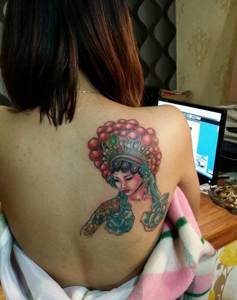 中国花旦纹身图片_肩部胸部背部腿部传统习俗肖像写实国画原创纹身图案