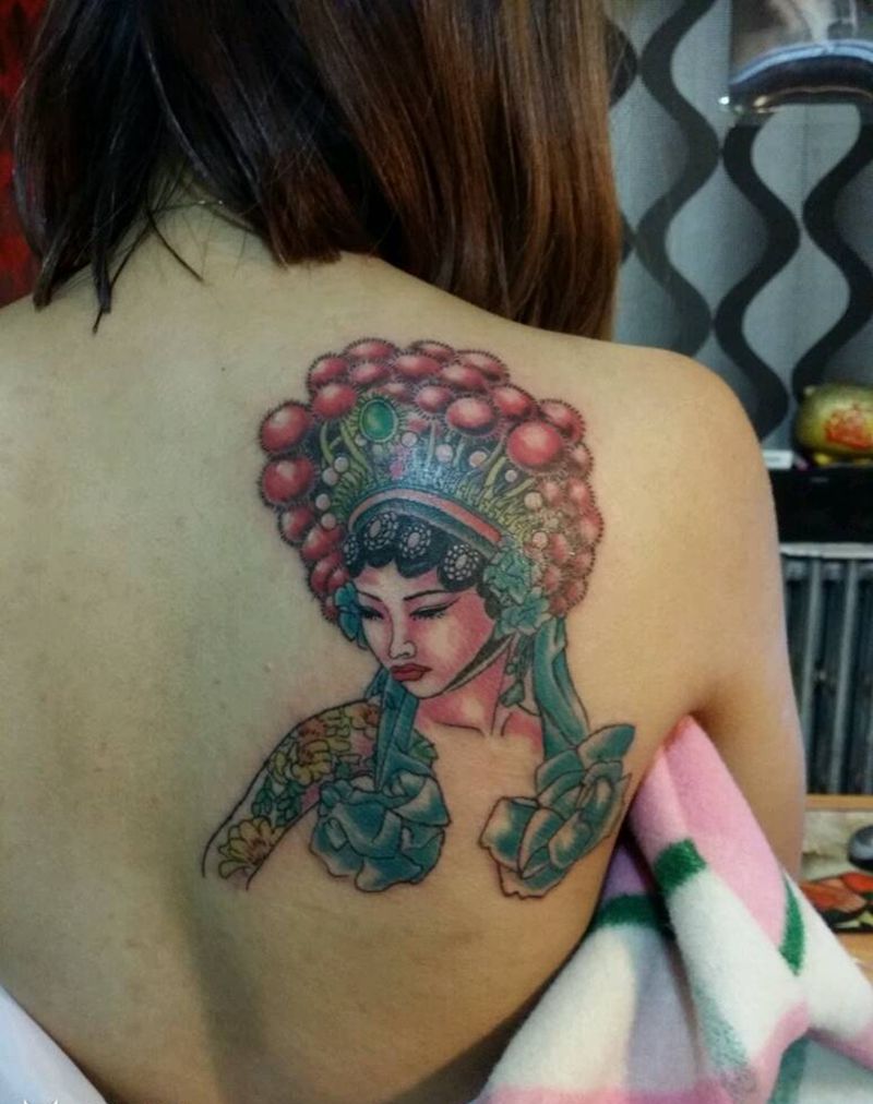 中国花旦纹身图片_肩部胸部背部腿部传统习俗肖像写实国画原创纹身图案