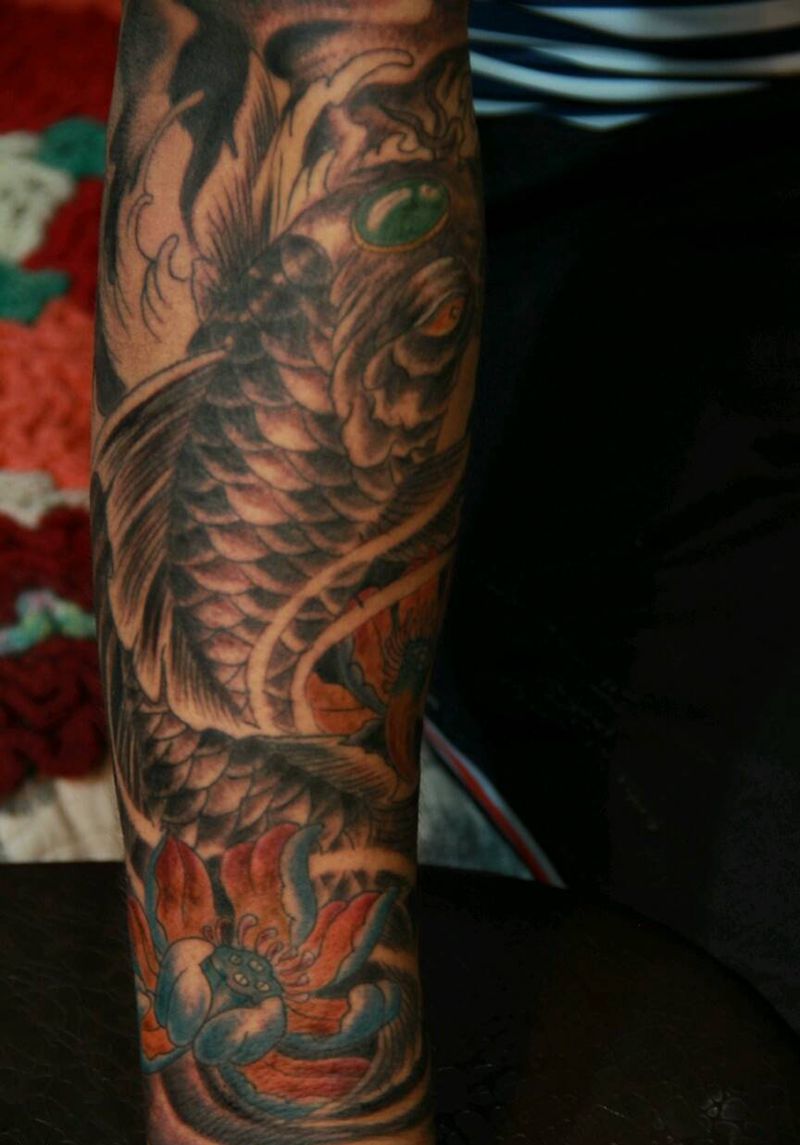 当前位置: 首页 >山西省太原市纹身店-太原翼龙刺青工作室纹身图案>观音锦鲤招财花臂纹身图片_肩部手臂手部传统习俗肖像写实人物鬼神宗教纹身图案