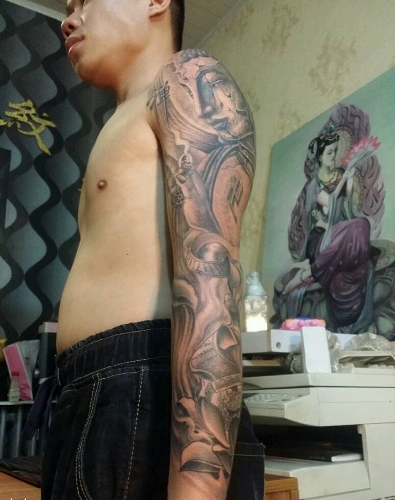 当前位置: 首页 >山西省太原市纹身店-太原翼龙刺青工作室纹身图案>意境花臂纹身图片_手臂手部传统习俗人物植物静物鬼神原创成品纹身图案