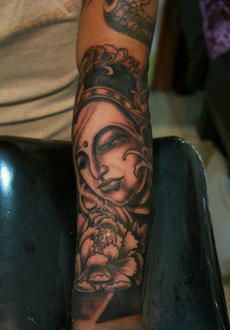 修改纹身作品纹身图片_手臂手部传统习俗清新写实国画人物鬼神宗教纹身图案
