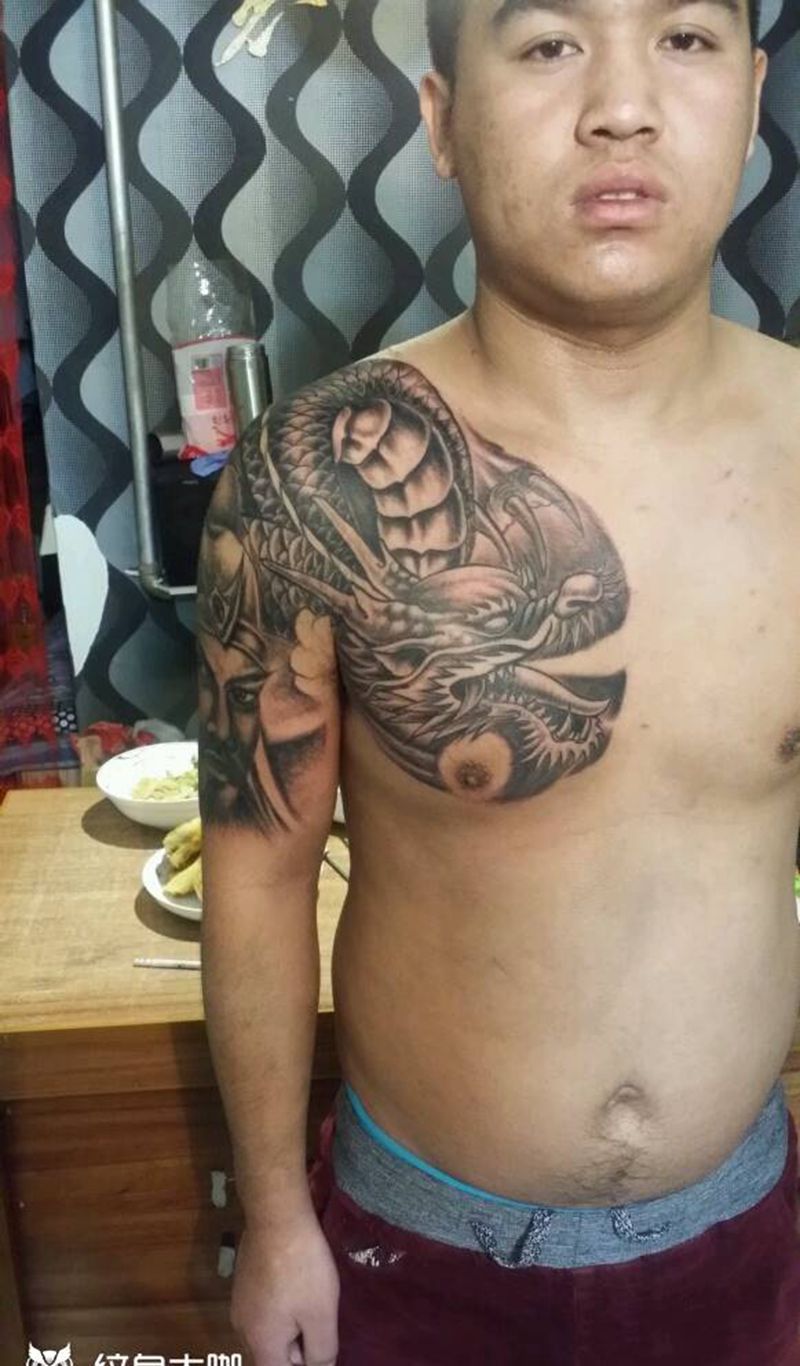当前位置: 首页 >山西省太原市纹身店-太原翼龙刺青工作室纹身图案>关公盘龙半甲纹身图片_肩部胸部传统习俗肖像动物人物成品纹身图案