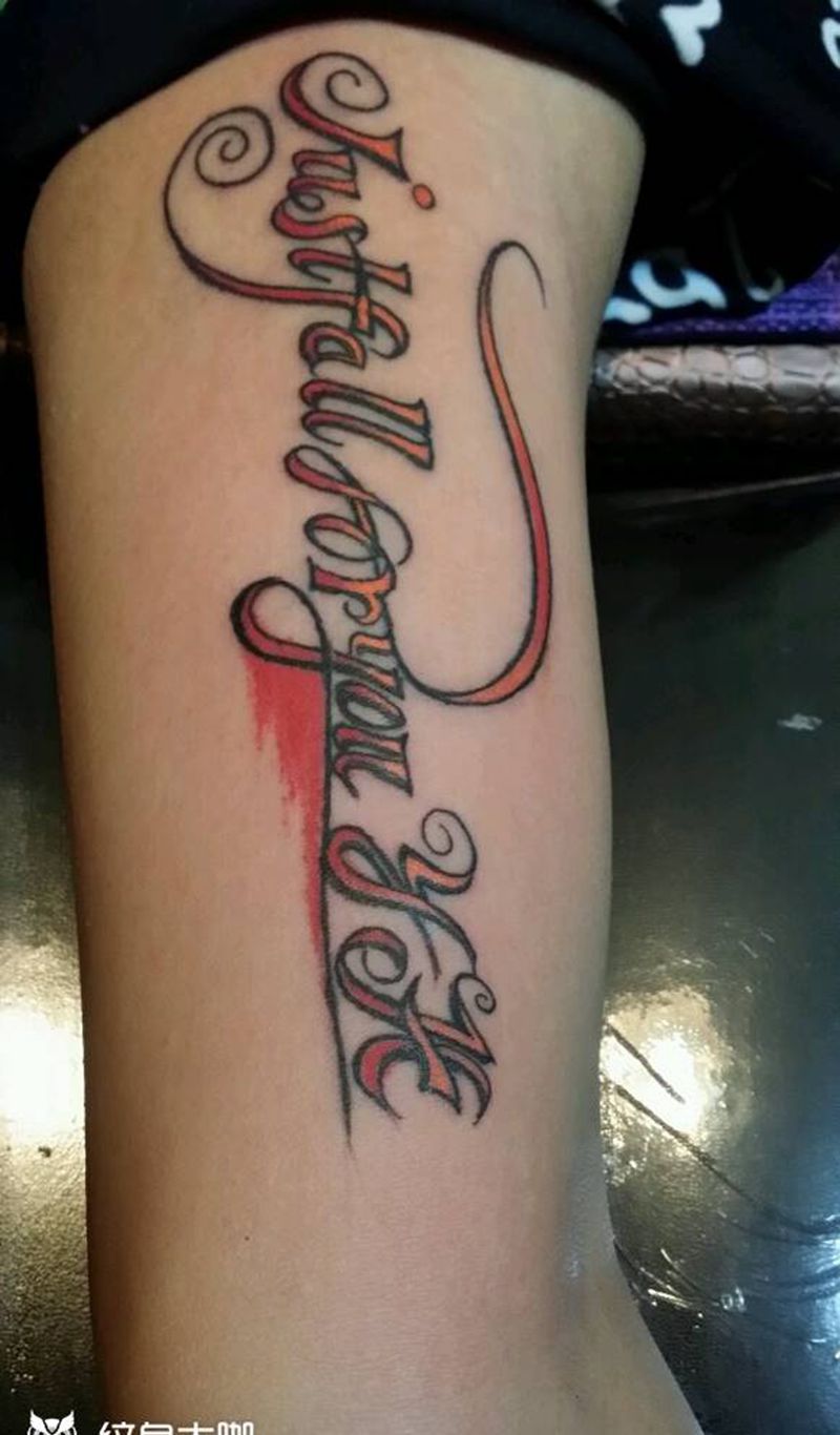 当前位置: 首页 >山西省太原市纹身店-太原翼龙刺青工作室纹身图案>英文小图纹身图片_手臂手部欧美字符原创成品纹身图案
