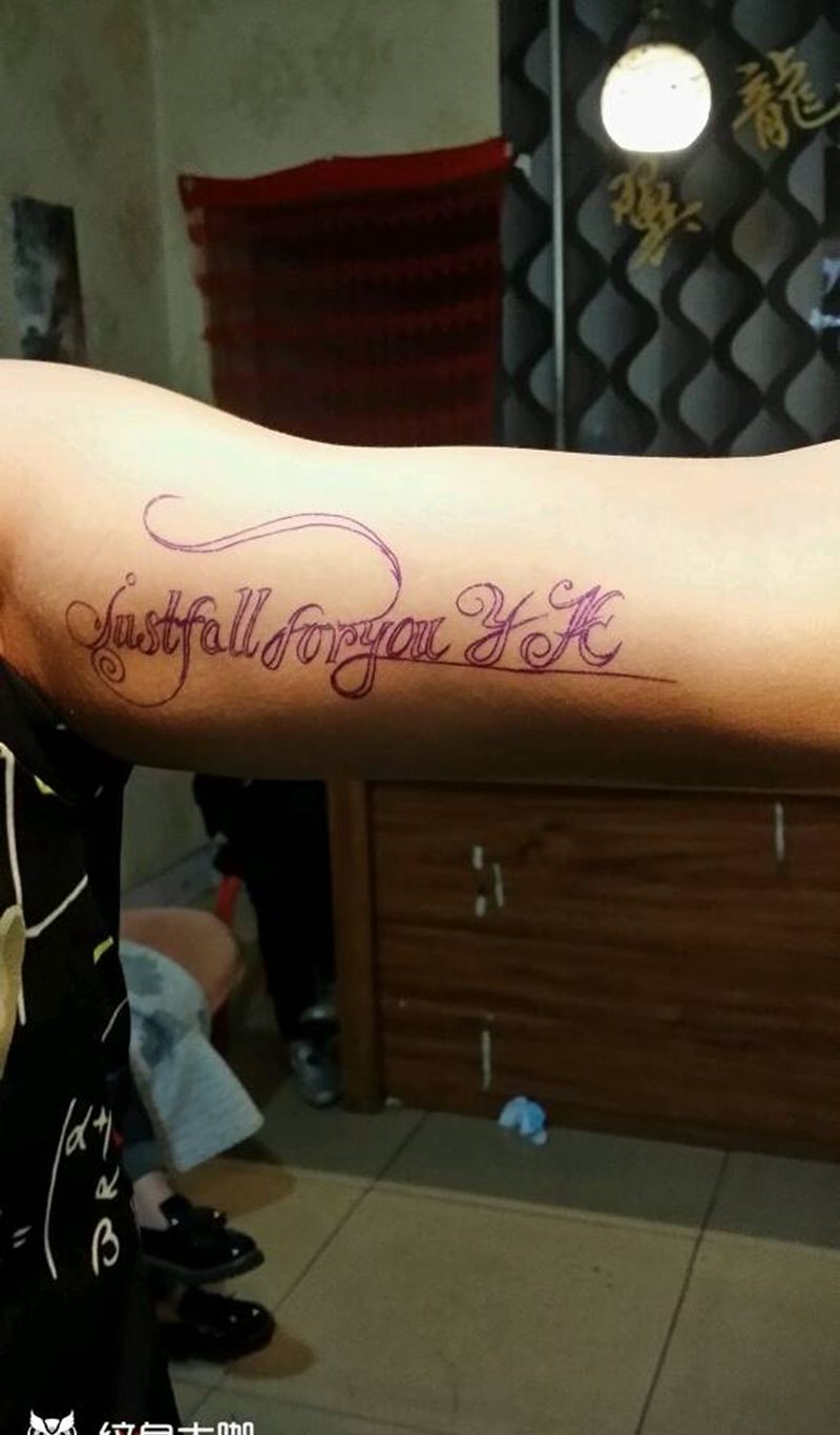 当前位置: 首页 >山西省太原市纹身店-太原翼龙刺青工作室纹身图案>英文小图纹身图片_手臂手部欧美字符原创成品纹身图案