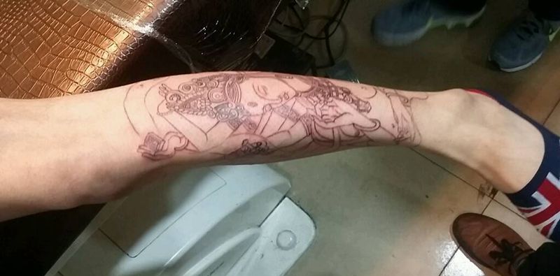 当前位置: 首页 >山西省太原市纹身店-太原翼龙刺青工作室纹身图案>千手观音纹身图片_肩部手臂腿部手部传统人物鬼神纹身图案
