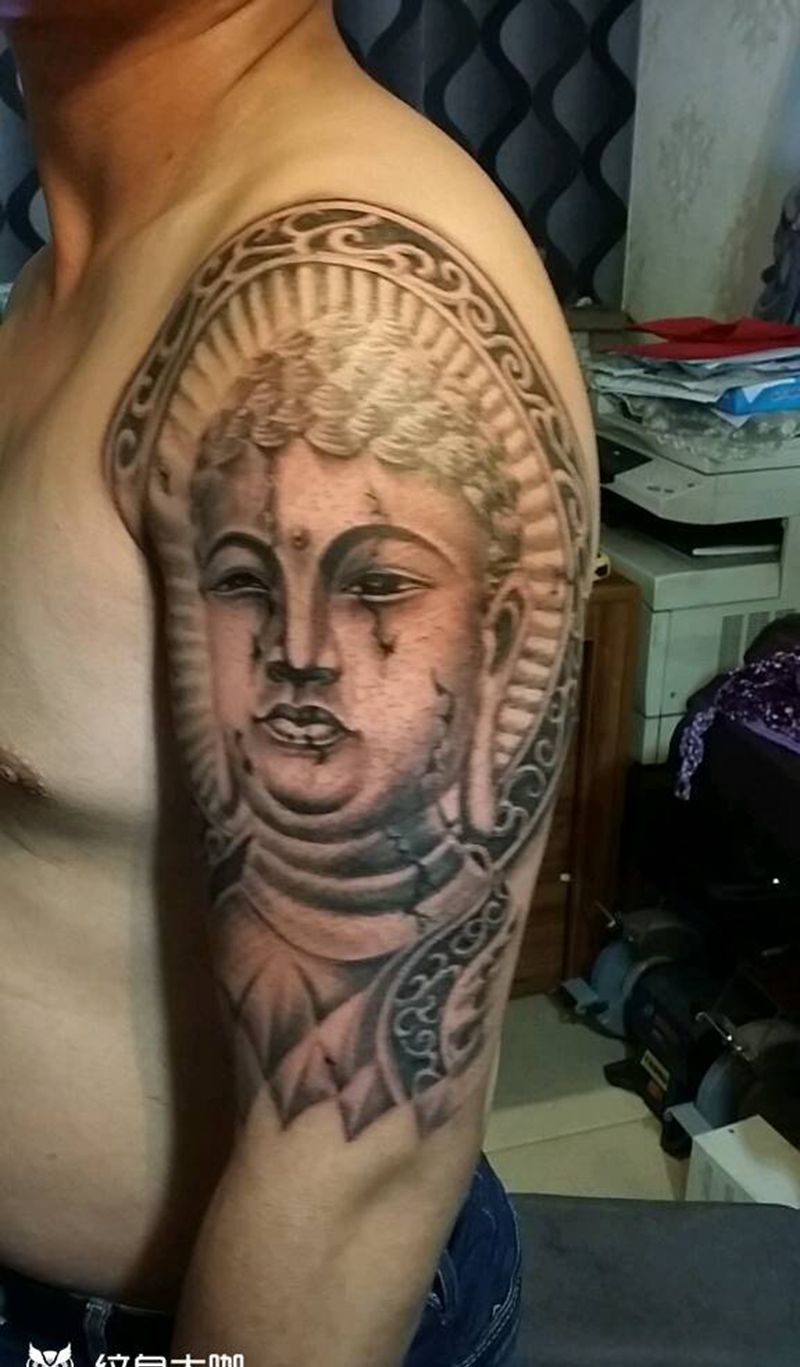 石雕佛纹身图片_肩部胸部背部手臂腿部传统肖像鬼神宗教成品纹身图案