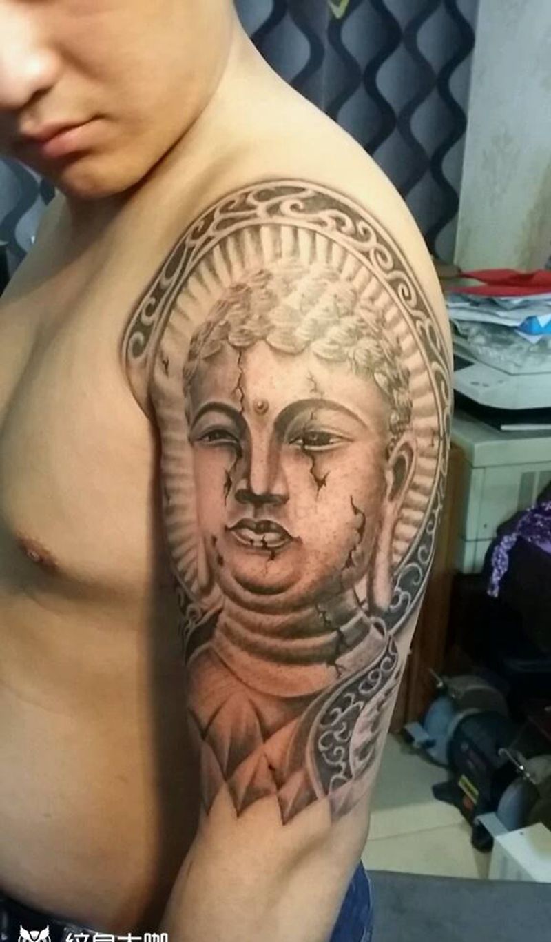石雕佛纹身图片_肩部胸部背部手臂腿部传统肖像鬼神宗教成品纹身图案