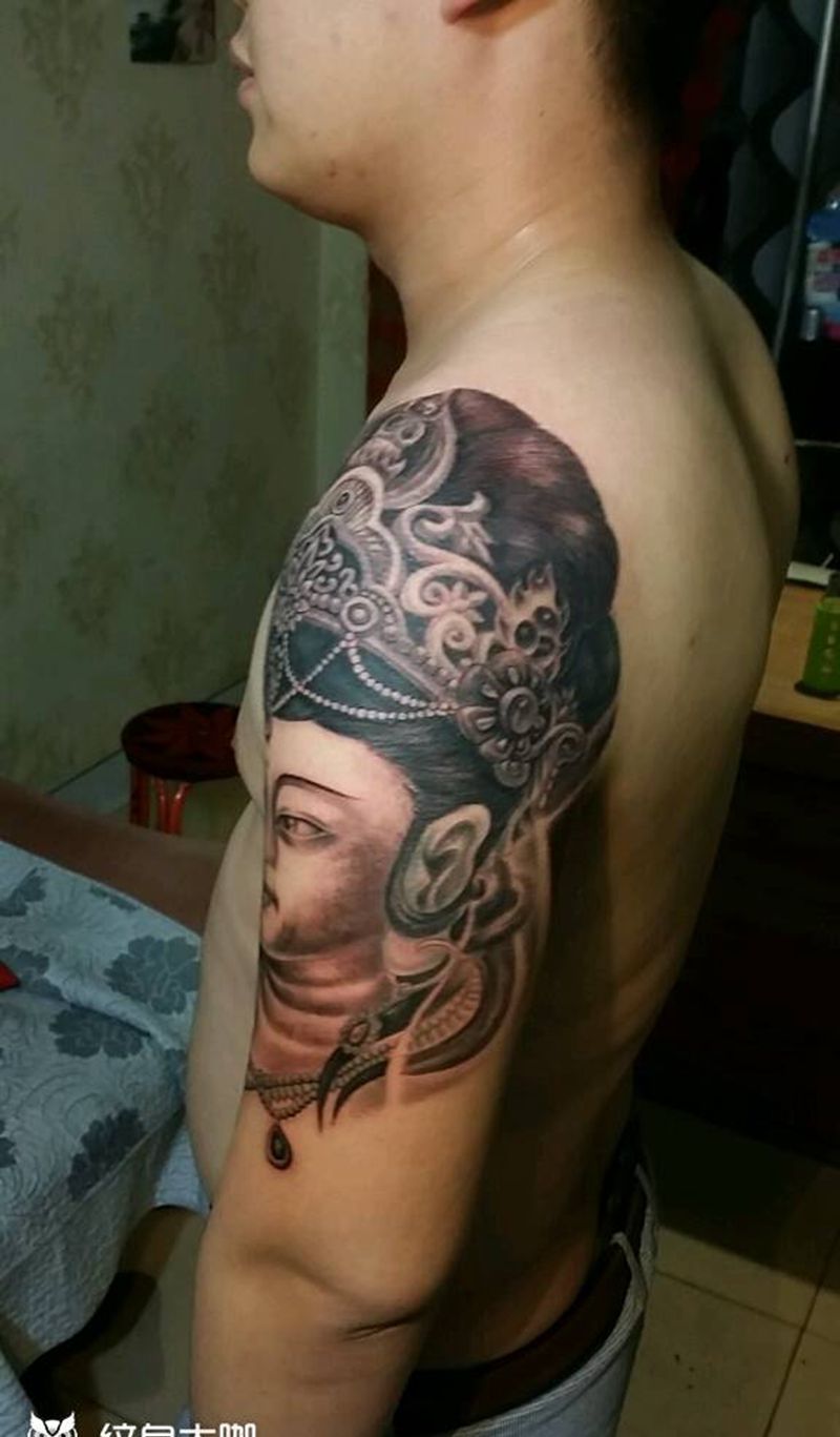 文殊菩萨纹身图片_肩部手臂手部传统人物宗教纹身图案