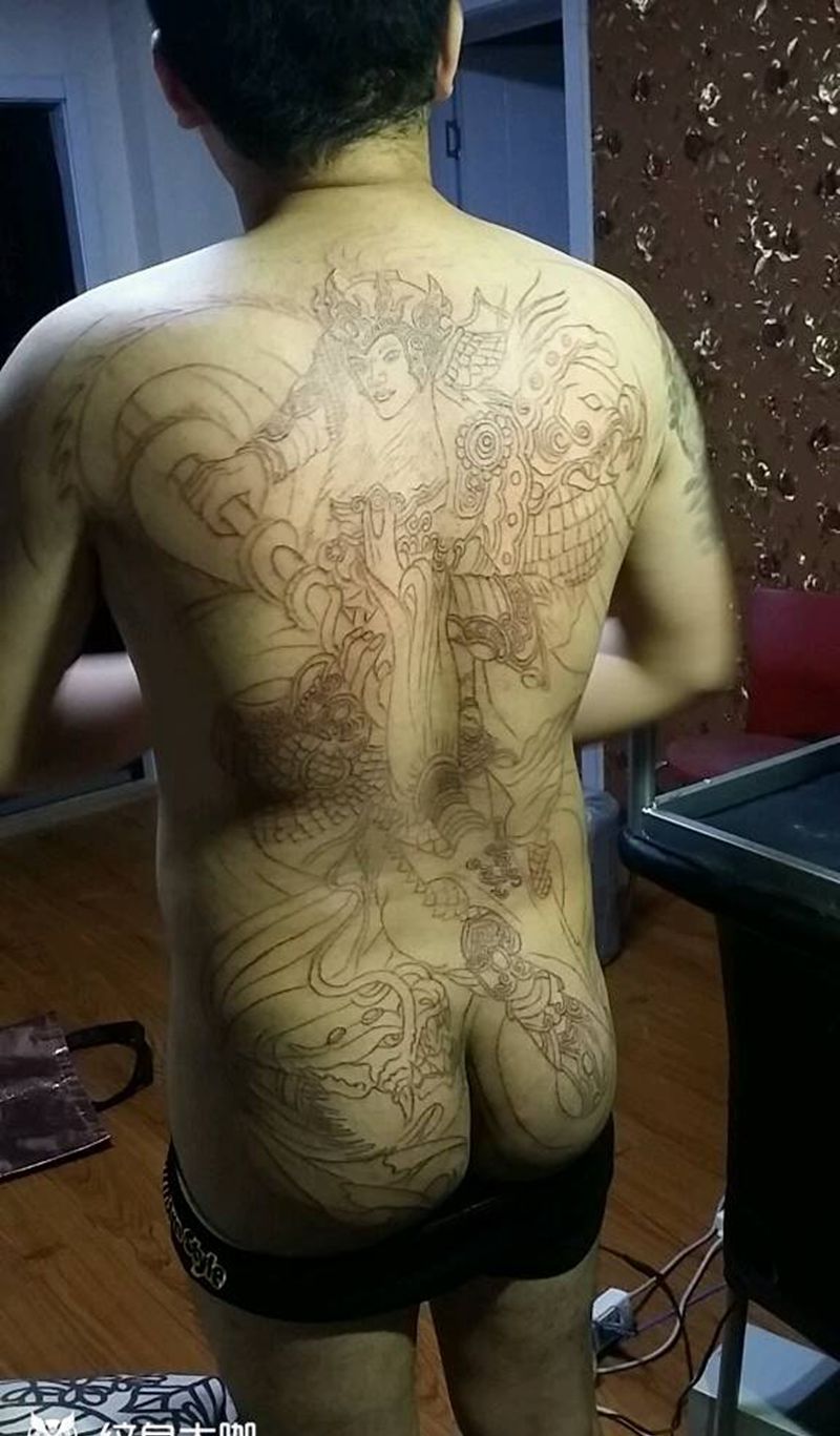 • 黑灰满背纹身图案