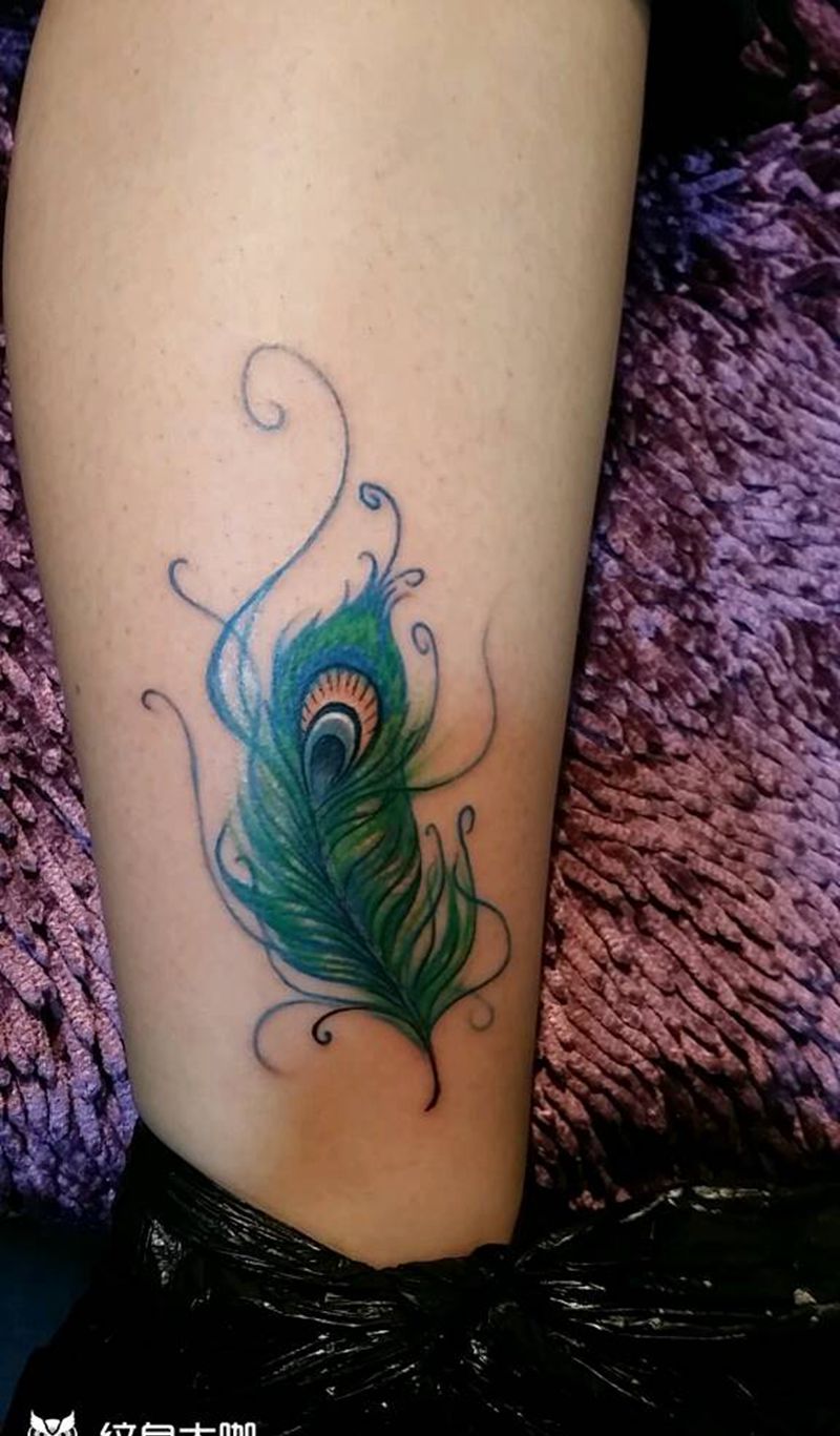 当前位置: 首页 >山西省太原市纹身店-太原翼龙刺青工作室纹身图案>孔雀羽毛纹身图片_腿部脚部欧美传统静物成品纹身图案