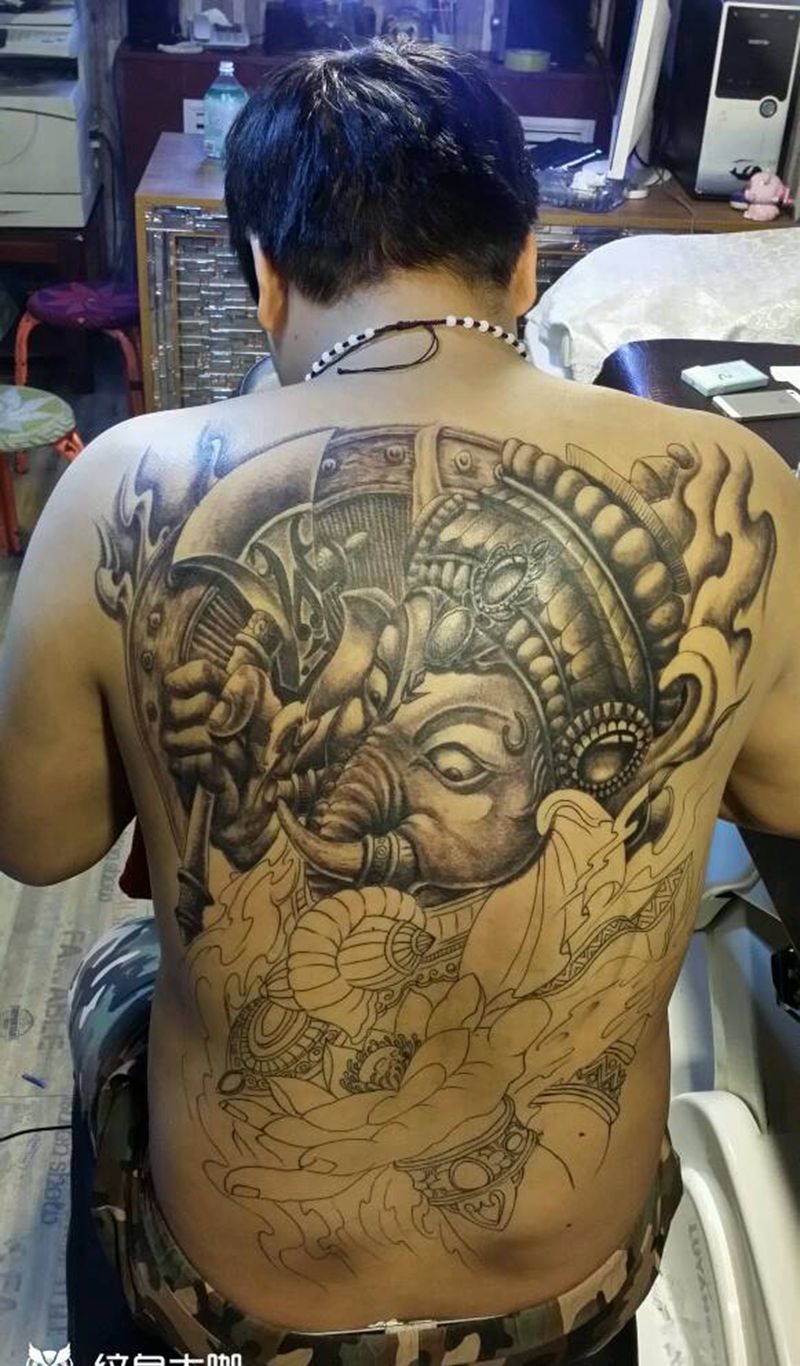 当前位置: 首页 >山西省太原市纹身店-太原翼龙刺青工作室纹身图案>招财象神纹身图片_背部传统动物鬼神宗教手稿纹身图案