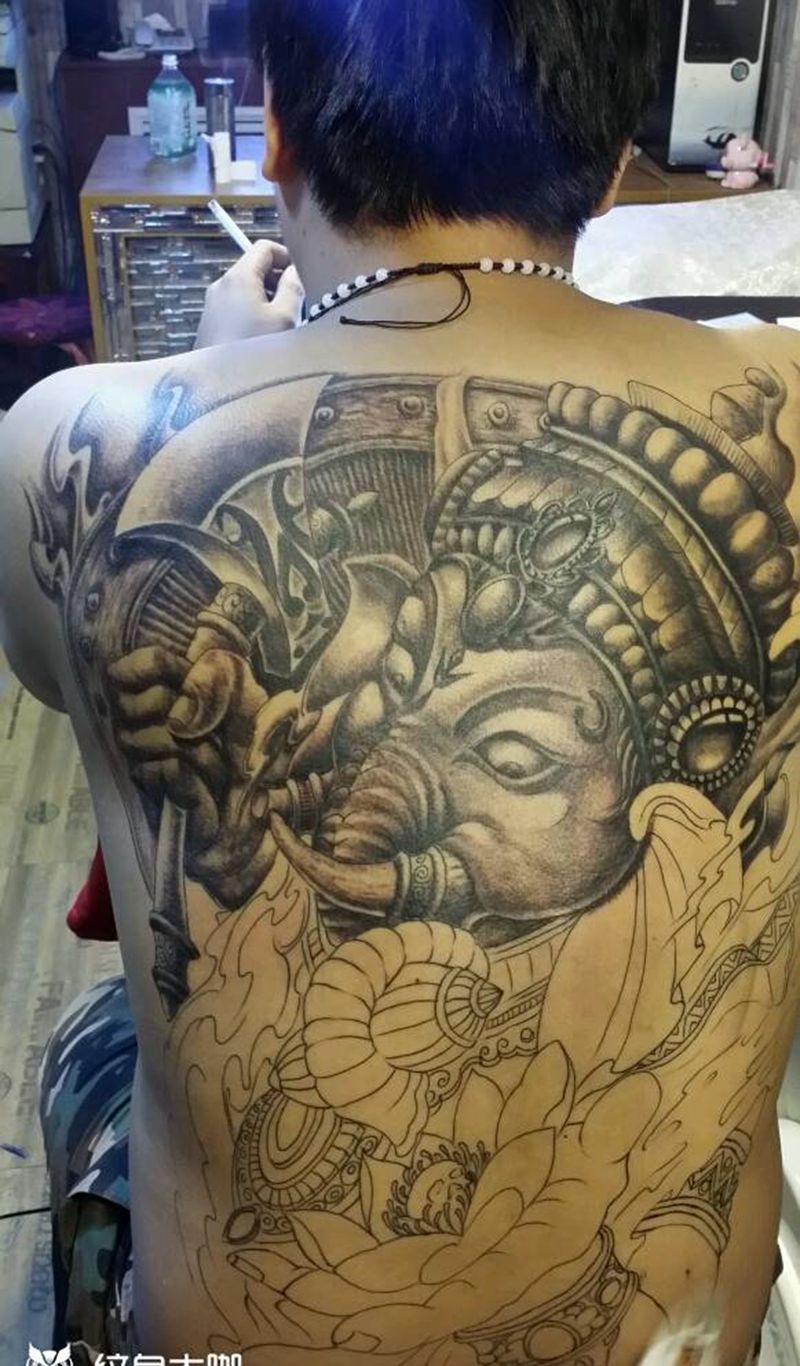 当前位置: 首页 >山西省太原市纹身店-太原翼龙刺青工作室纹身图案>招财象神纹身图片_背部传统动物鬼神宗教手稿纹身图案