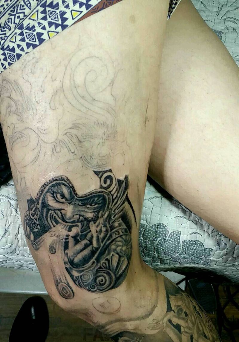 • T网红王老大花腿龙纹身图片_腿部新传统纹身图案