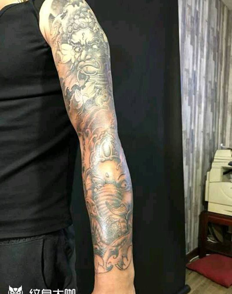 当前位置: 首页 >山西省太原市纹身店-太原翼龙刺青工作室纹身图案>不动明王花臂纹身图片_肩部手臂手部传统习俗动物鬼神宗教成品手稿纹身图案