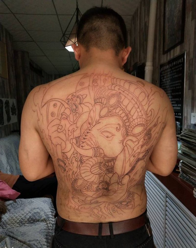 当前位置: 首页 >山西省太原市纹身店-太原翼龙刺青工作室纹身图案>象神纹身图片