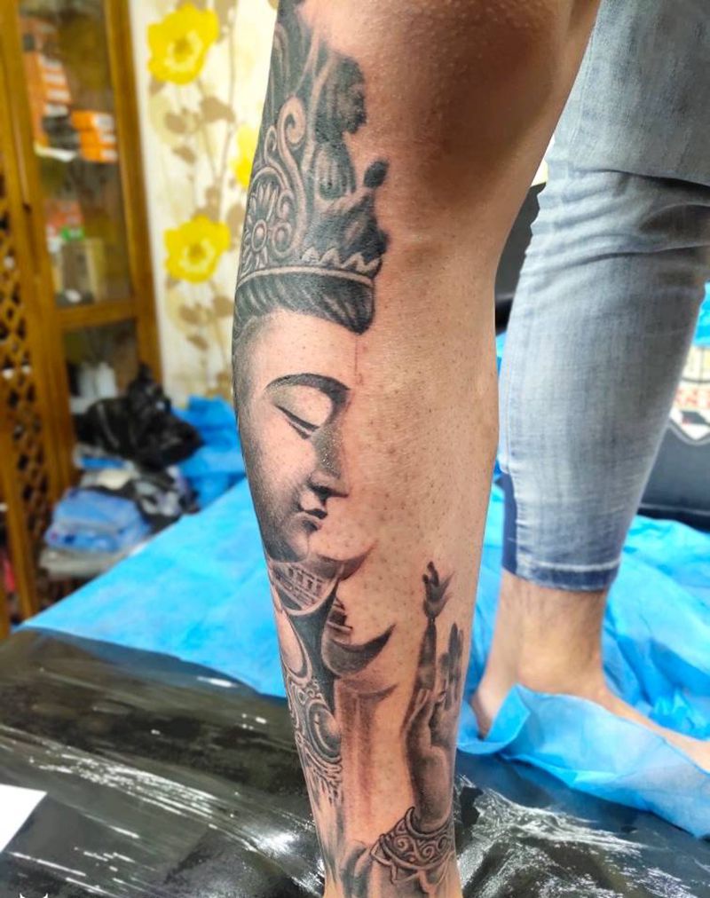 当前位置: 首页 >山西省太原市纹身店-太原翼龙刺青工作室纹身图案>菩萨纹身图片_腿部新传统纹身图案
