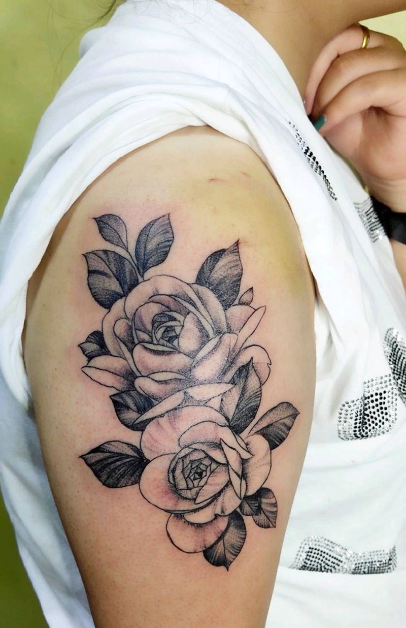 点刺花纹身图片_手臂肩部新传统纹身图案