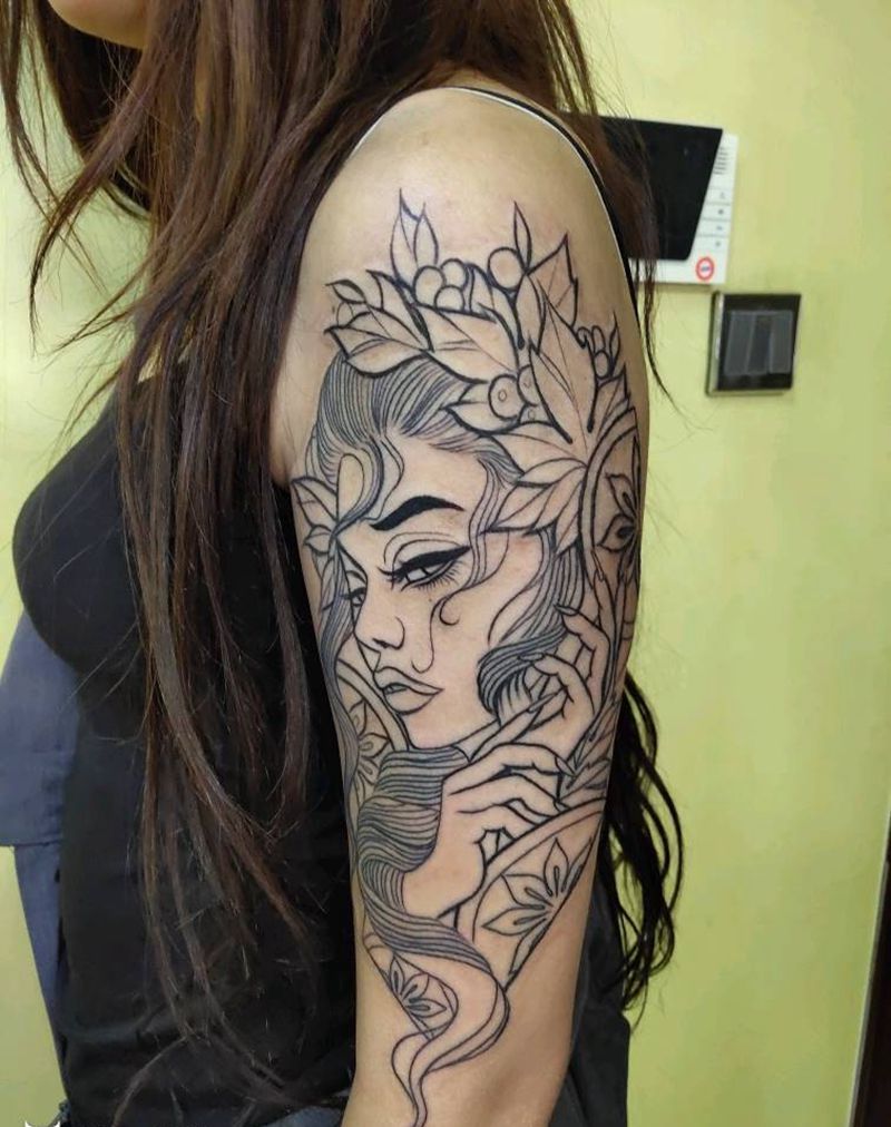 当前位置: 首页 >山西省太原市纹身店-太原翼龙刺青工作室纹身图案>花之仙子纹身图片_手臂背部Old School纹身图案